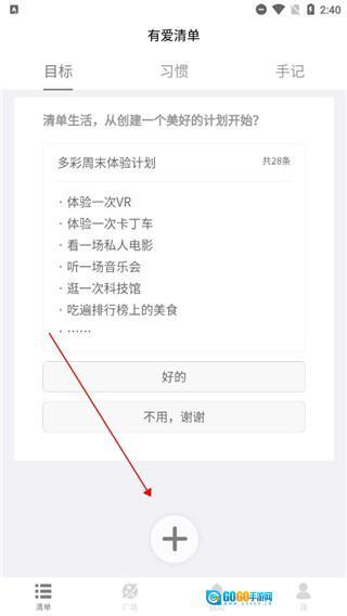 有一款名为“有爱清单”的应用,它采用简约纯粹的主题设计。用户能够借助这款应用记录各类计划,涵盖学习、工作、旅行等多个方面,从而梳理清晰思路。同时,它也可作为打卡工具,用于运动、参与户外项目等场景。用户可以自主创建目标并完成,带来独特的使用感受。