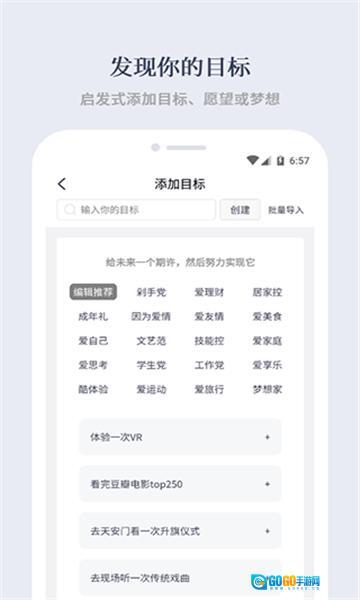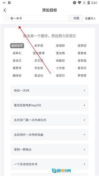 用户还能依据自身需求创建目标,同时也支持批量导入的方式。
