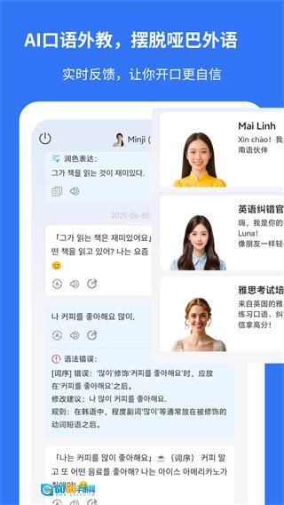 AI口语外教功能,能模拟日常交流、商务洽谈等各类对话场景,在练习过程中实时识别发音问题并提供针对性的纠正指导,同时还会对语音语调的准确性、表达的流畅程度进行专业评分,帮助学习者解决缺乏外教练习的难题,从而轻松掌握地道流利的口语表达。