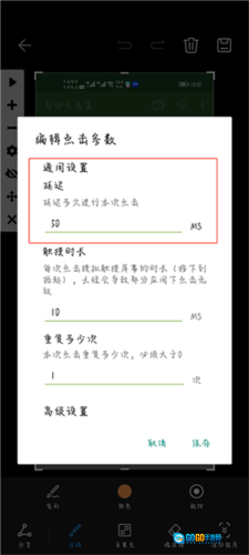 支持在线调整点击等待时长、点击次数、按下持续时间等点击相关设置;