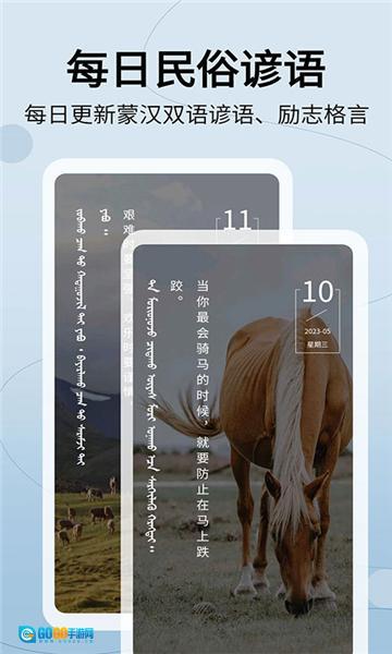 这款应用每日都会更新蒙汉双语的谚语和各类励志格言。