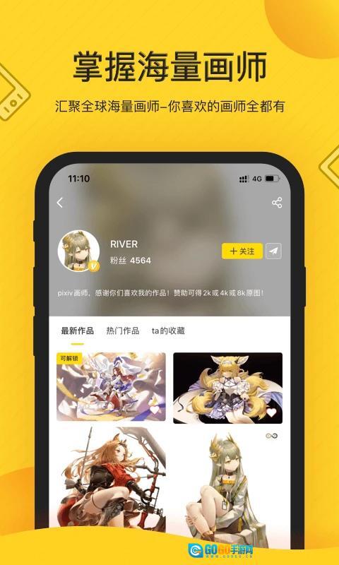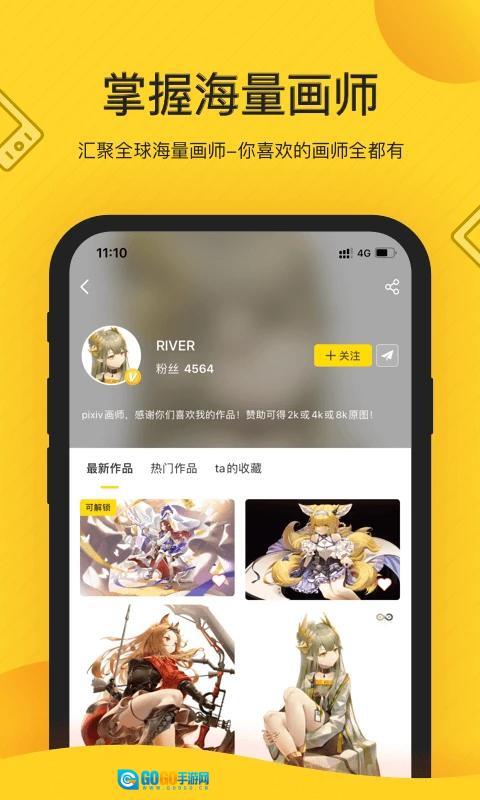 还能点击画师,浏览其作品,也可以关注心仪的画师。