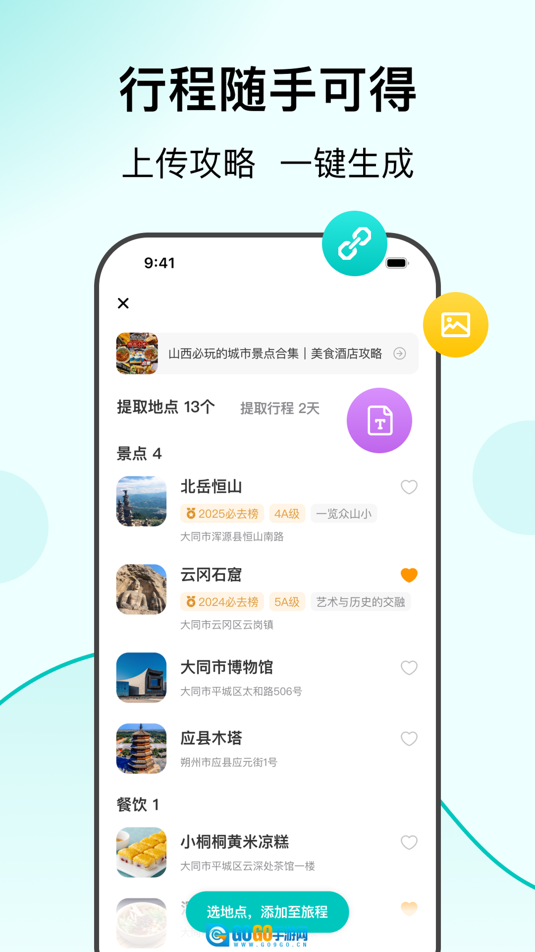 VoyaGO是一款面向旅行爱好者打造的行程规划软件,用户能借助它安排自己的旅行计划。只需输入目的地,软件就能快速为用户生成该行程的最短路径。此外,软件具备便捷的地图与列表切换功能,方便用户更轻松地查看行程安排和地图导航。尤为实用的是,用户还可以在软件中浏览其他旅行者分享的攻略,从而更精准地找到值得推荐的景点。