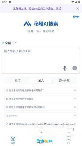 秘塔AI搜索拥有纯净搜索、全网搜索、学术搜索等多项实用功能,其界面设计简洁清爽,全程弹窗,能让用户不受干扰地专注于信息获取。
