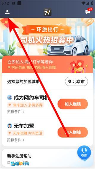 打开云上竹山,在首页点击左上角的个人中心图标。