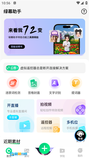 绿幕助手是一款十分实用的录制工具,它能够把各类背景调整成绿幕效果,方便用户进行快速剪辑与抠图等操作。其使用方法强大又高效,适用于各种场景,能助力用户拍摄出更有趣的视频。这款软件是超级好用的虚拟拍摄视频录制工具,新加入了电影后期特效中常用的绿屏抠像技术,用户只需将自己的背景更换为绿色并借助绿屏功能即可使用。