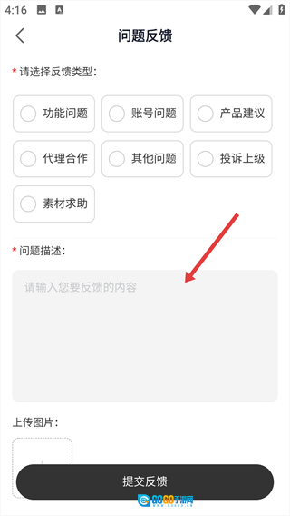 在问题描述框填写具体内容。
