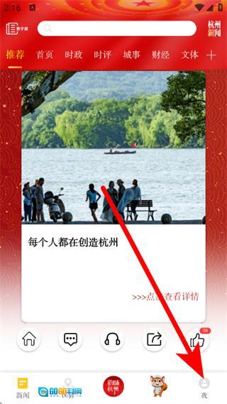 打开杭州新闻应用,在主界面找到底部的“我”按钮并点击,即可进入个人中心页面。