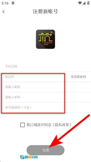 输入验证码,设置密码,勾选相关协议后,点击完成按钮,即可完成账号注册流程。