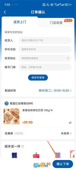 最后填写收货人信息,在这里能看到预计送达时间,然后点击确认完成下单。