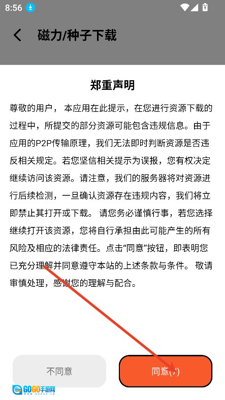 首次使用,点击“同意”
