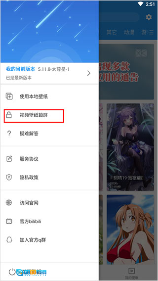 在侧边栏菜单里,找到“视频壁纸锁屏”这个选项并点击它,这样就能进入锁屏壁纸的设置界面,然后开启该功能。