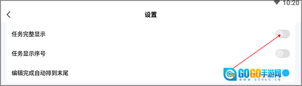 在设置界面中点击空气“任务完整显示”后面的圆点。