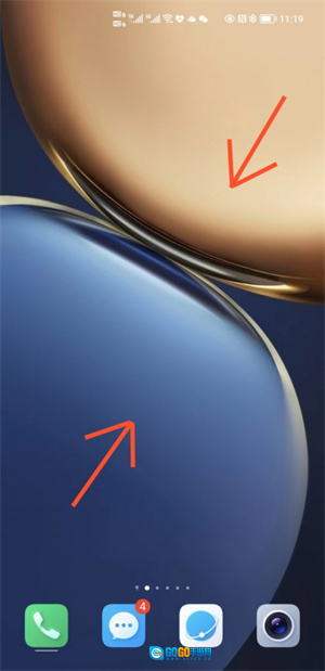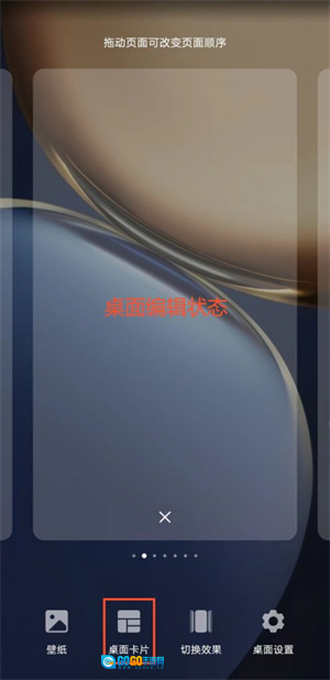 在桌面上用双指捏合,进入桌面编辑状态。