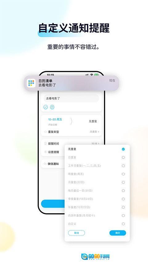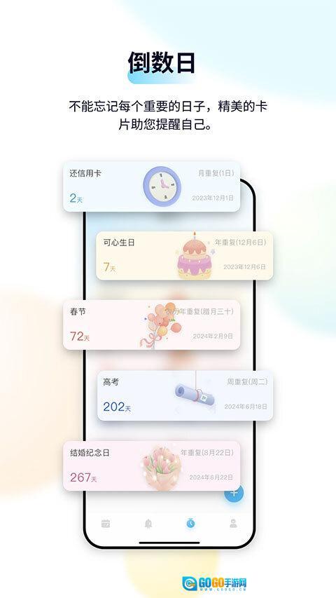 日历清单是一款实用的日程管理规划软件,能帮助我们更好地安排日常生活与工作,提升时间使用效率,让生活更有条理。它包含详细的日历信息,节气和法定节假日都会清晰显示,我们可以快速查看每月日历视图,待办事项和提醒一目了然。在手机版日历清单中,我们能轻松管理日程,还可设置重复任务。此外,软件支持直接钉在桌面壁纸,背景颜色也能自由调整。