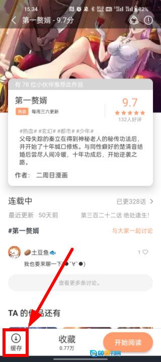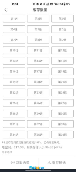 然后选择缓存的漫画章节,点击"缓存所选"。