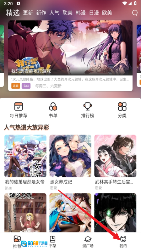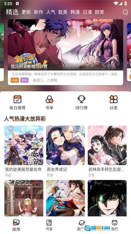 首页会为大家精选人气爆棚和品质超高的漫画,热门神作多到看不完,而且每天都有新的佳作推荐,让你永远不缺好漫画看!