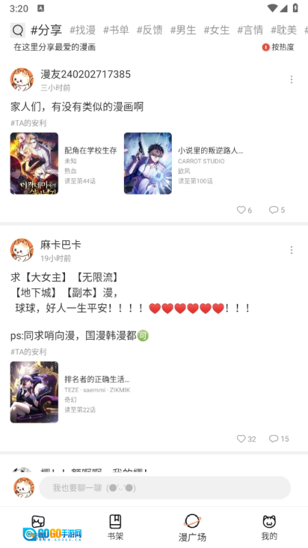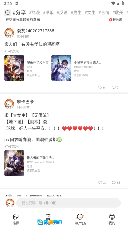 在这里既能与其他漫友畅快交流漫画、分享阅读心得,还能彼此互助求漫,结识更多志同道合的伙伴。