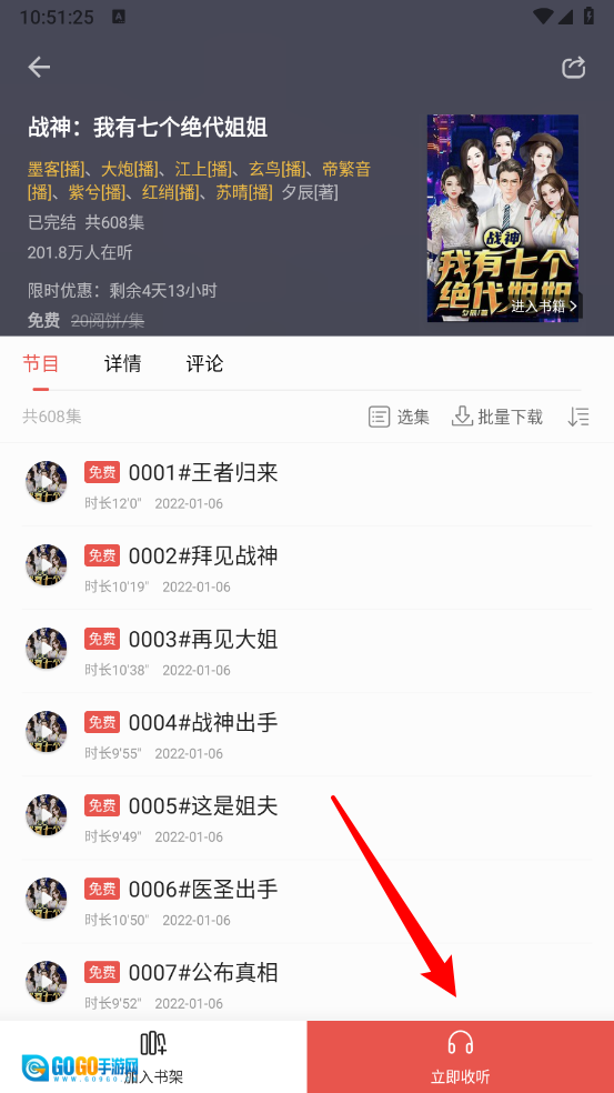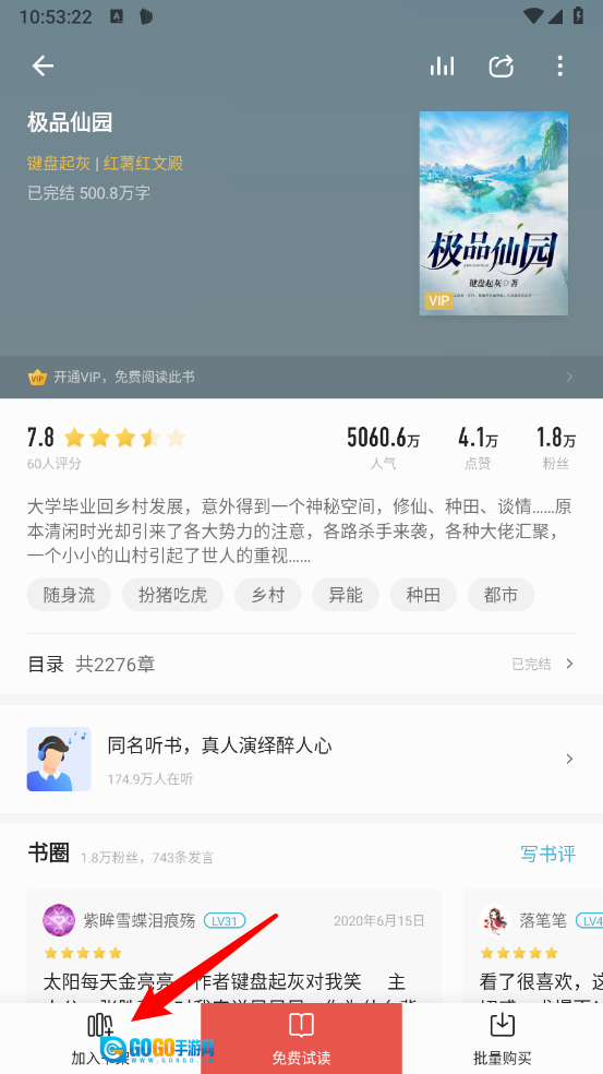 呼出菜单后,点击右下角的“听”字标识就能听书,同时会跳转至播放界面。