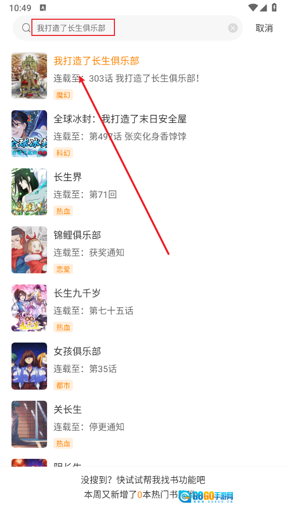 最后还可以在上方的搜索框,输入喜欢的漫画名。