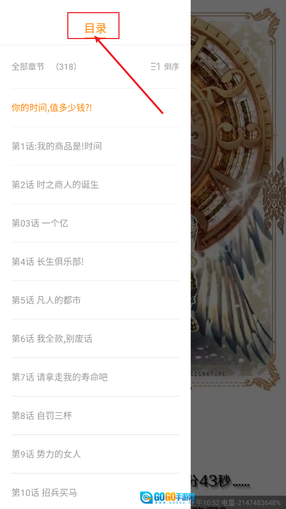 还可以进入阅读界面,轻点中间区域呼出菜单,再点击“目录”选项。