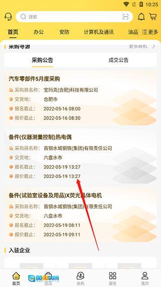 点击首页,选择想要采购的项目;