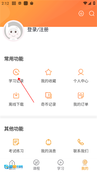 点击常用功能下的学习记录
