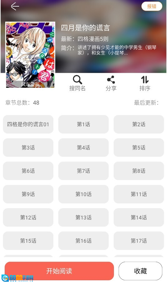 点击漫画封面就能进入简介与章节页面,挑选对应的章节就可以阅读漫画了。