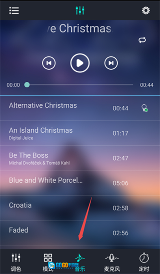 这里可以切换播放方式,点击下一首,暂停音乐等。