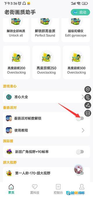 首先安装老街画质助手,接着运行游戏,随后开启香肠派对的帧数悬浮窗。