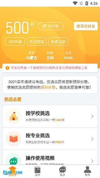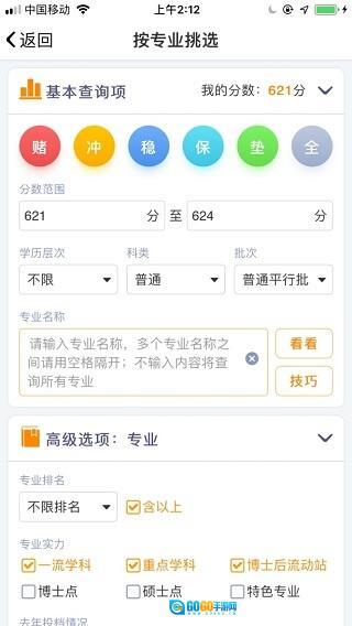 在这主界面可以看到挑选学校、按照专业挑选等功能;