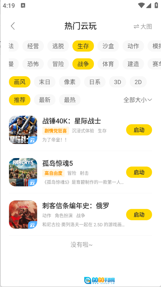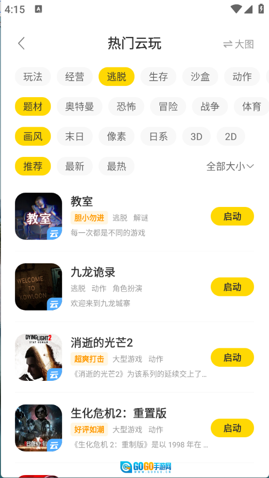 点击“更多”选项,便能浏览到丰富的云游戏分类,涵盖经营、逃脱、沙盒等多种类型。