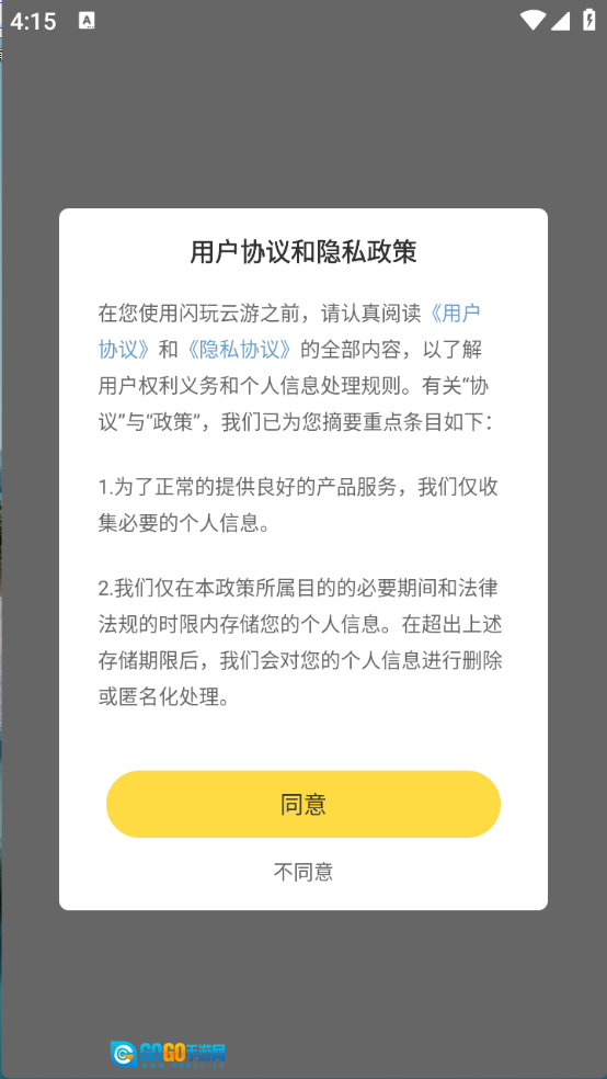 首先在本站完成闪玩云游的安装,随后查看并同意隐私政策及用户协议。