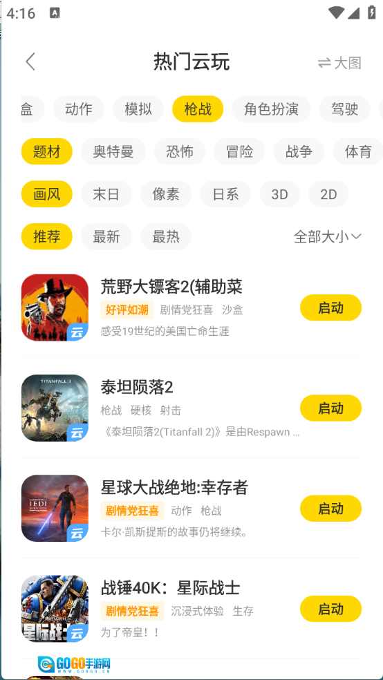 用户打开游戏详情页面后,能看到详细的视频介绍和截图,点击“启动游戏”按钮就能开始游戏了。
