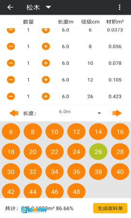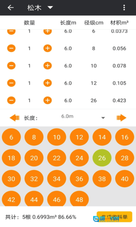 材积计算器具备设置不同树种、长度及径级价格的功能。用户能够依据市场行情与自身需求,对不同树种、长度和径级的价格进行设定。该功能有助于用户更灵活地计算总价,依据不同的价格配置开展计算。分类清晰的结果是材积计算器的又一优势。计算结果会按照不同的树种、长度和径级加以分类,用户可以清楚地知晓每一项计算结果。此功能能够帮助用户更好地掌握木材的材积状况,便于他们进行后续的工作安排与决策。