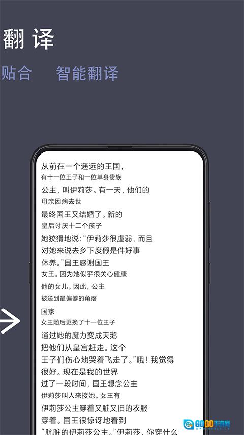 原位置智能译功能可让翻译结果自动匹配原文所在位置,结合智能变色技术,用户无需反复对照原文与译文,就如同为屏幕上的文字添加了双语注释一般。