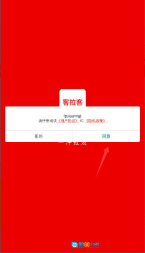 当你第一次打开客拉客商城应用时,系统会自动弹出用户协议和隐私条款的提示页面。请你认真阅读这些内容,确认无误后点击“同意”按钮,这样就能顺利进入商城的主界面了。