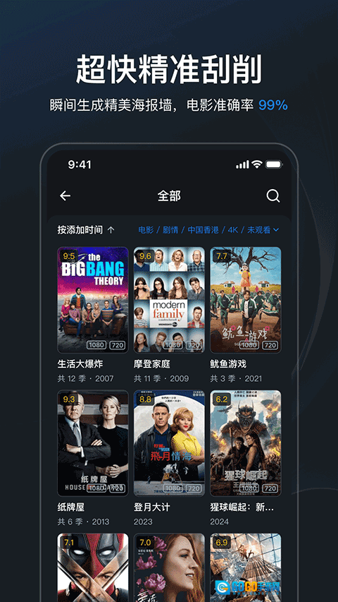 飞牛影视智能刮削功能,能快速生成精美的海报墙与完整的影片信息,其电影刮削的准确率达到99%。