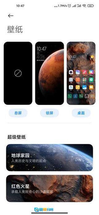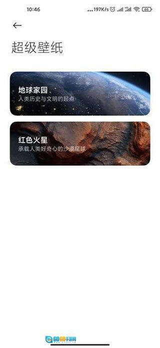 可以找到地球家园、红色火星等不同类型的超级壁纸,其中地球壁纸是可以直接应用的。