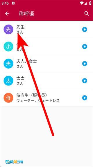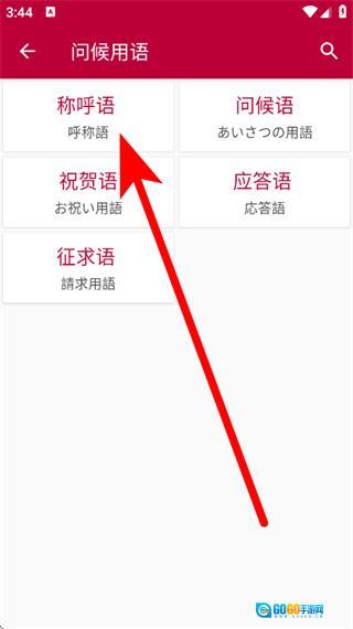 在子分类页面点击称呼语,即可进入称呼语的词汇列表页面。