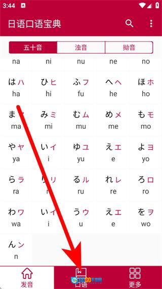 在日语口语宝典的首页,点击底部的口语按钮,就能进入口语分类页面。