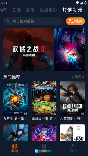 点击软件首页上方的搜索框可以快速检索想看的动漫。