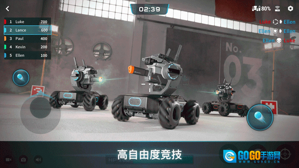 多人在线竞技,包含征服、乱斗、竞速、定点射击等多种玩法模式,支持最多6台设备同时在线对战,技能随机生成并可实时释放。