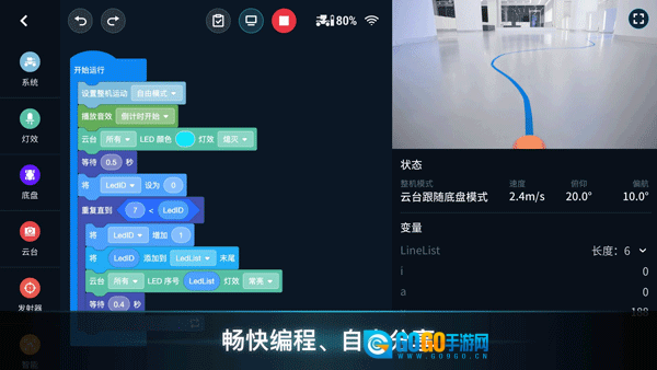 RoboMaster是大疆专门为RoboMaster机器人打造的全栈式操控与编程终端。打开它,一秒就能进入超低延迟的FPV视角,左手操控麦克纳姆轮全向底盘实现飘移,右手控制两轴云台精准锁头射击;滑动到实验室界面,还能把Scratch积木块转化为Python代码,让机器人完成先巡线、再识别胜利手势、最后给队友开启无敌护盾的一系列动作,从新手入门到竞技操作,一个终端全部搞定。