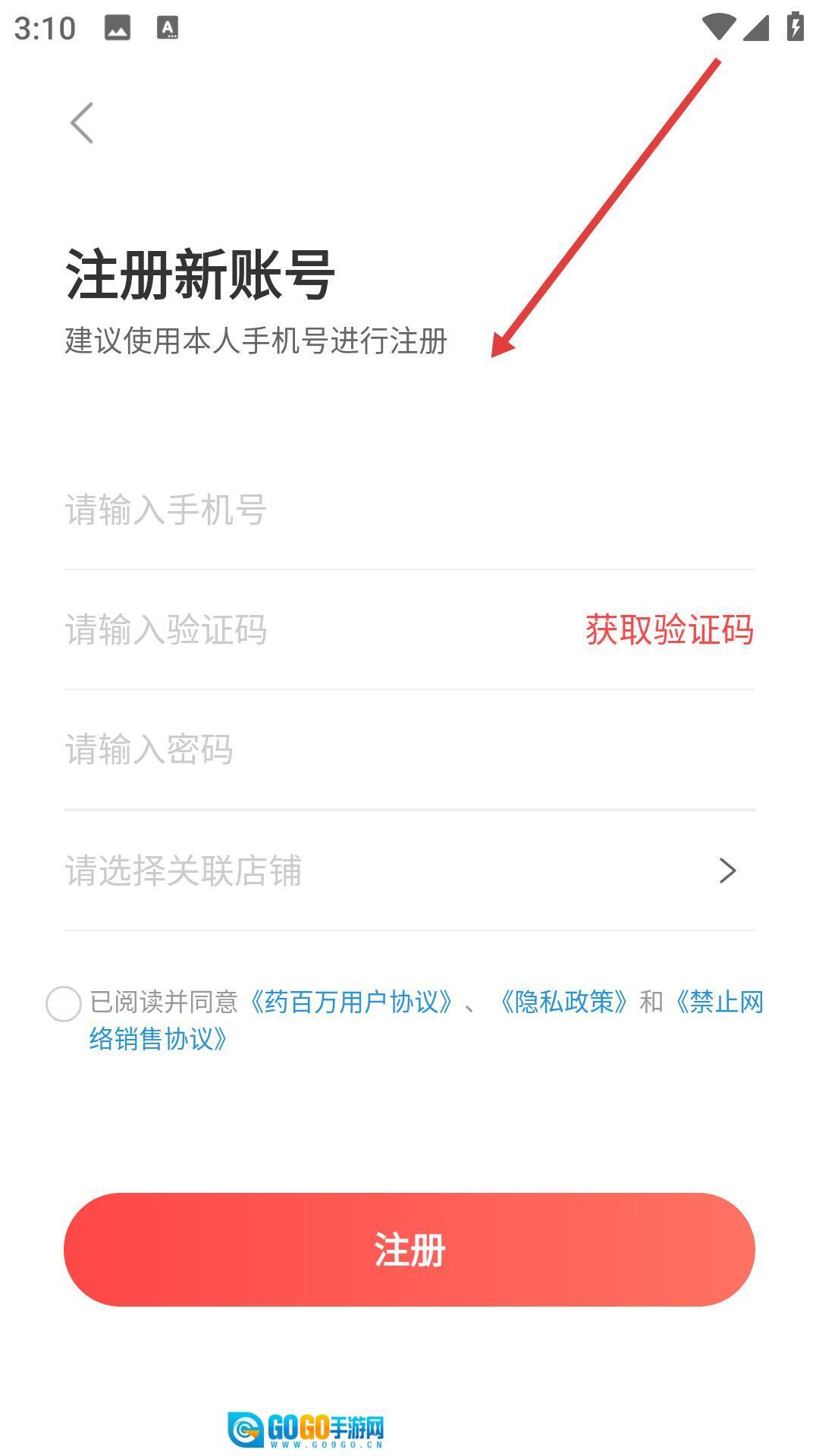 在新账户注册页面,按照提示依次填写手机号、验证码与密码。选定需要关联的店铺,勾选同意相关协议的复选框后,点击注册按钮即可完成账户注册流程。