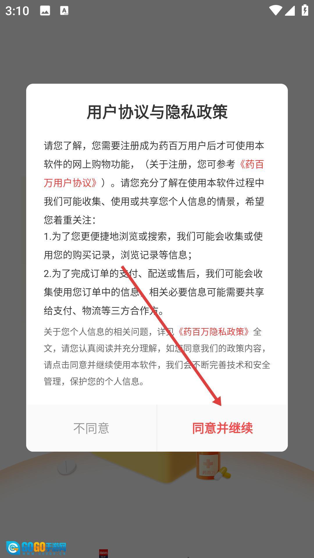 安装结束后,您得在用户协议与隐私政策页面点击“同意”按钮。只有同意了相关条款,您才能进入申请环节。