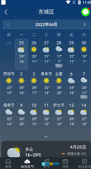 要是有朋友想了解未来几天的天气情况,只需点击“40天天气”选项,就能获取一份大致的预报信息了。