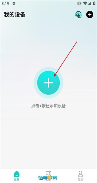 打开软件后,进入“我的设备”页面,会看到“点击+按钮添加设备”的提示,点击这个按钮就能进入添加设备页面。