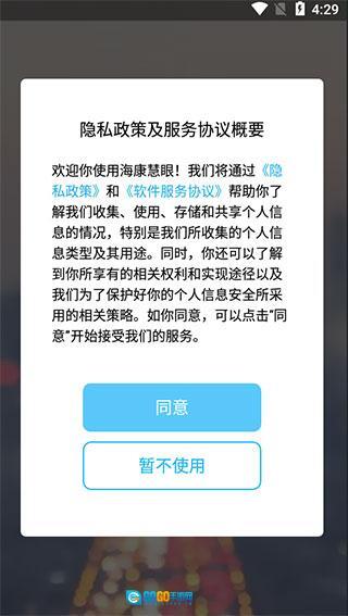 在当前平台上部署海康慧眼行车记录设备,启动相关应用程序,并同意服务条款。