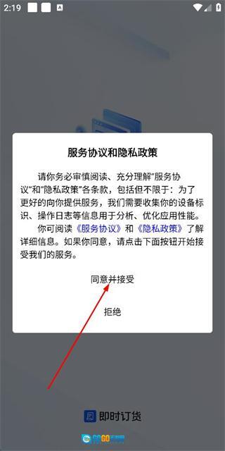 在用户协议和隐私政策的弹窗里点击同意并接受,就能进入登录页面。